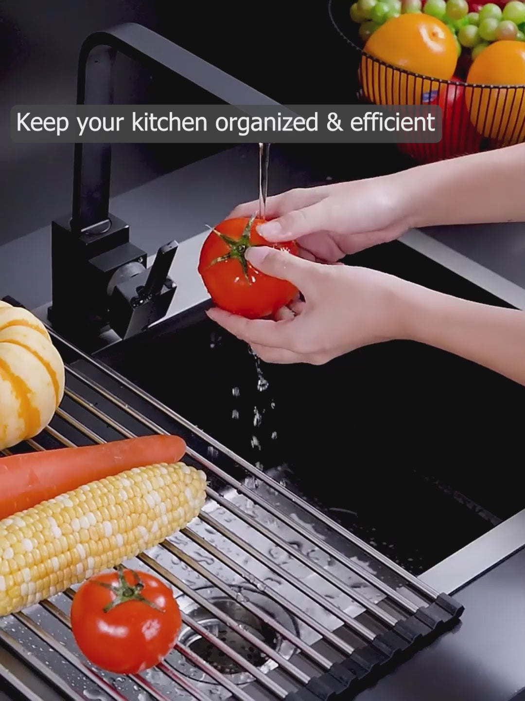 Keep your kitchen clean, organized, and efficient with the Folding Kitchen Drain Rack. Designed to fit neatly over your sink, it instantly creates extra space for washing and draining fruits, vegetables, meat, and even heavy pots.